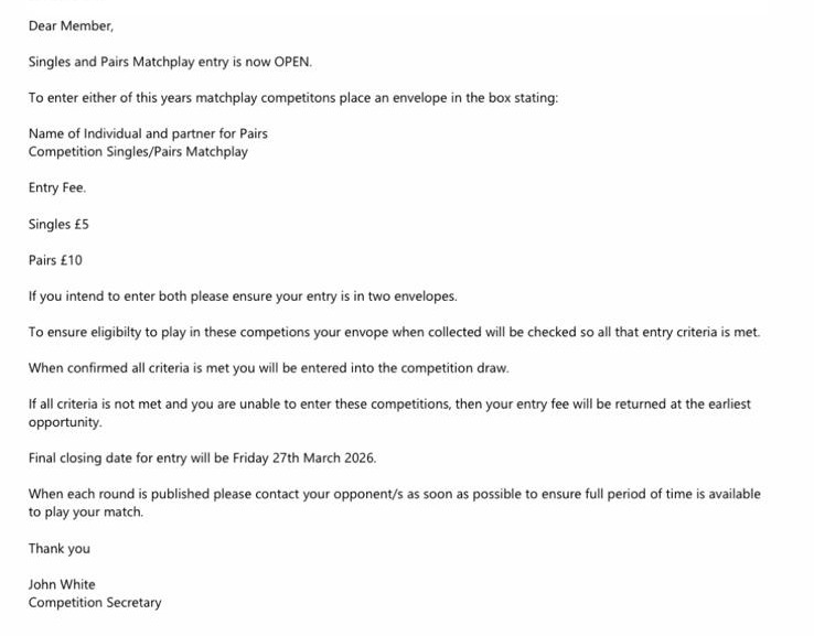 The minutes from the committee meeting held 3rd March 2026 have now been uploaded under the committee section of the drop down menus above.