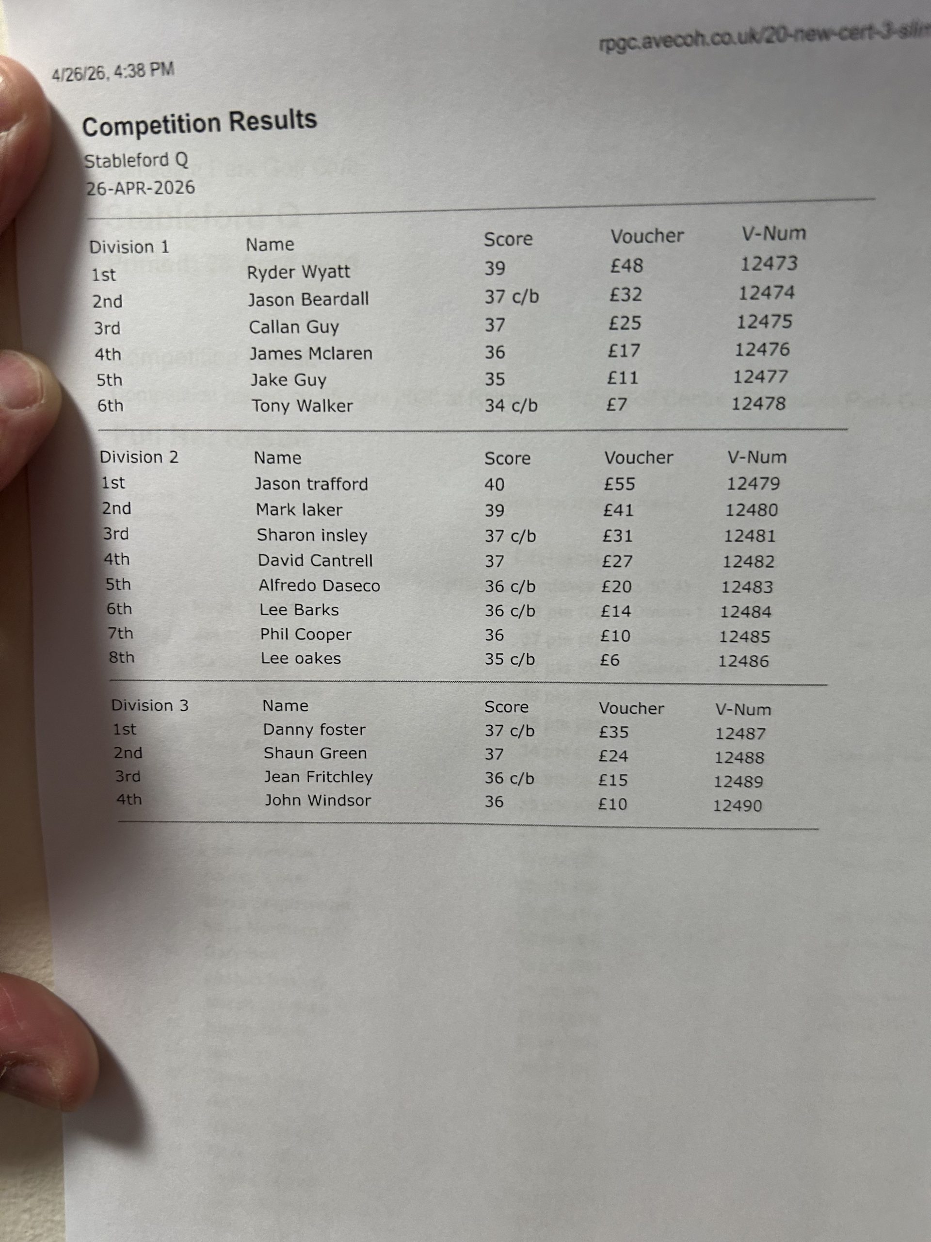 Charity Day Handicap Calculator