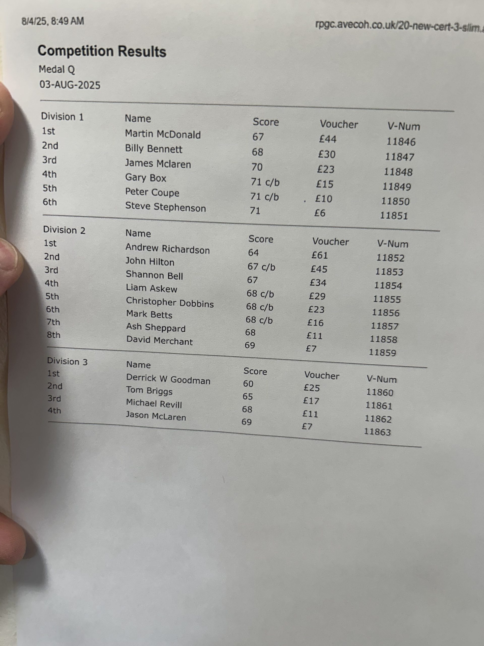 Charity Day Handicap Calculator